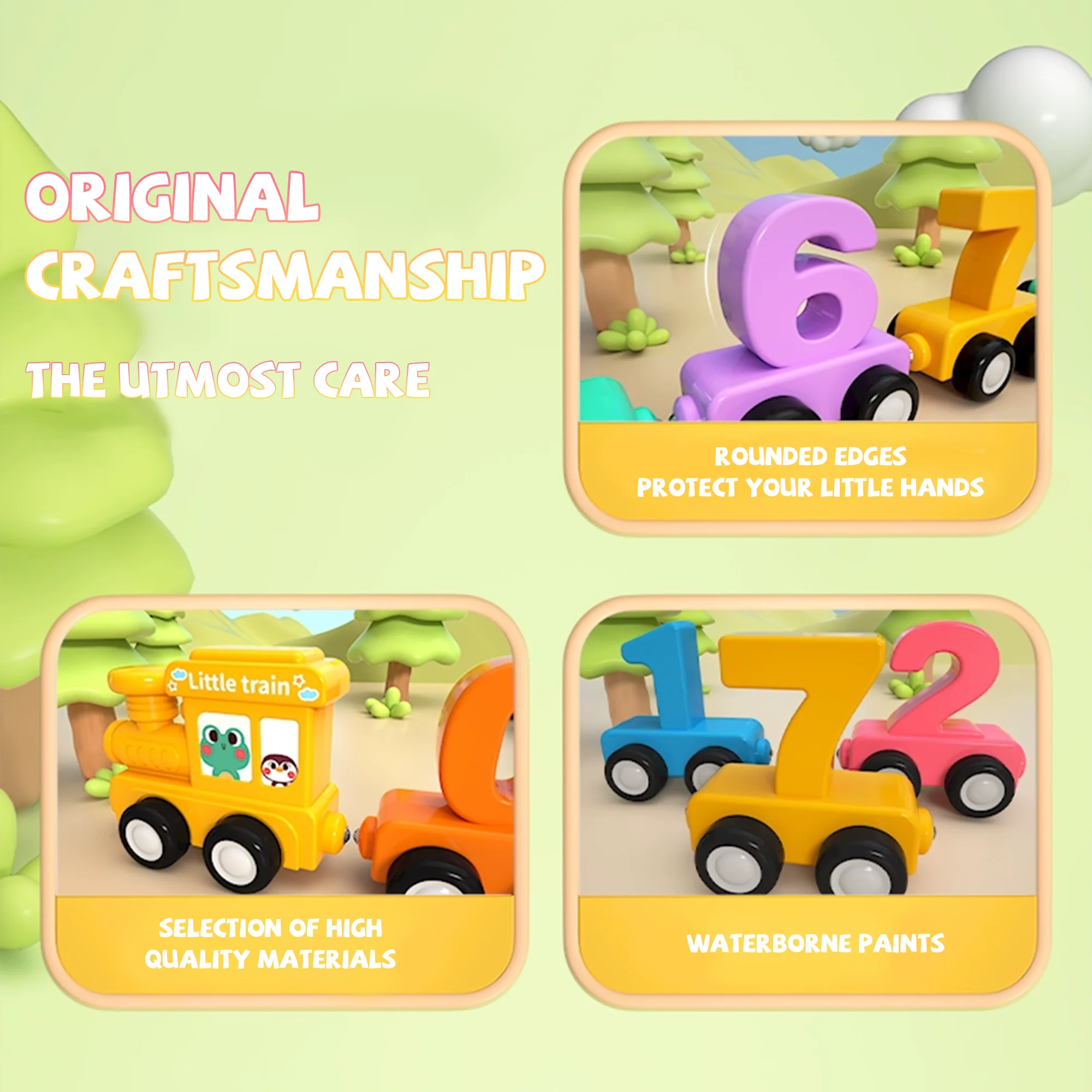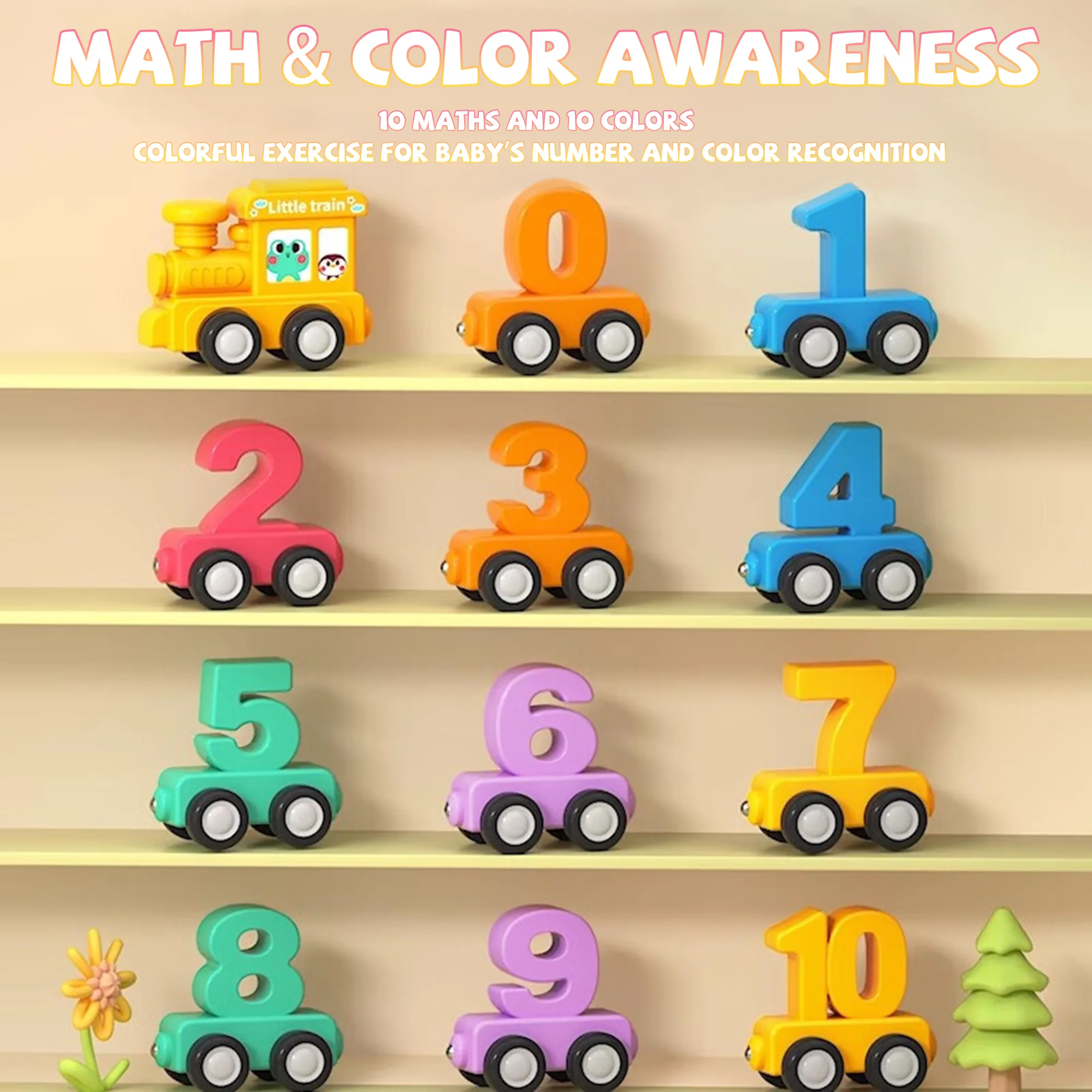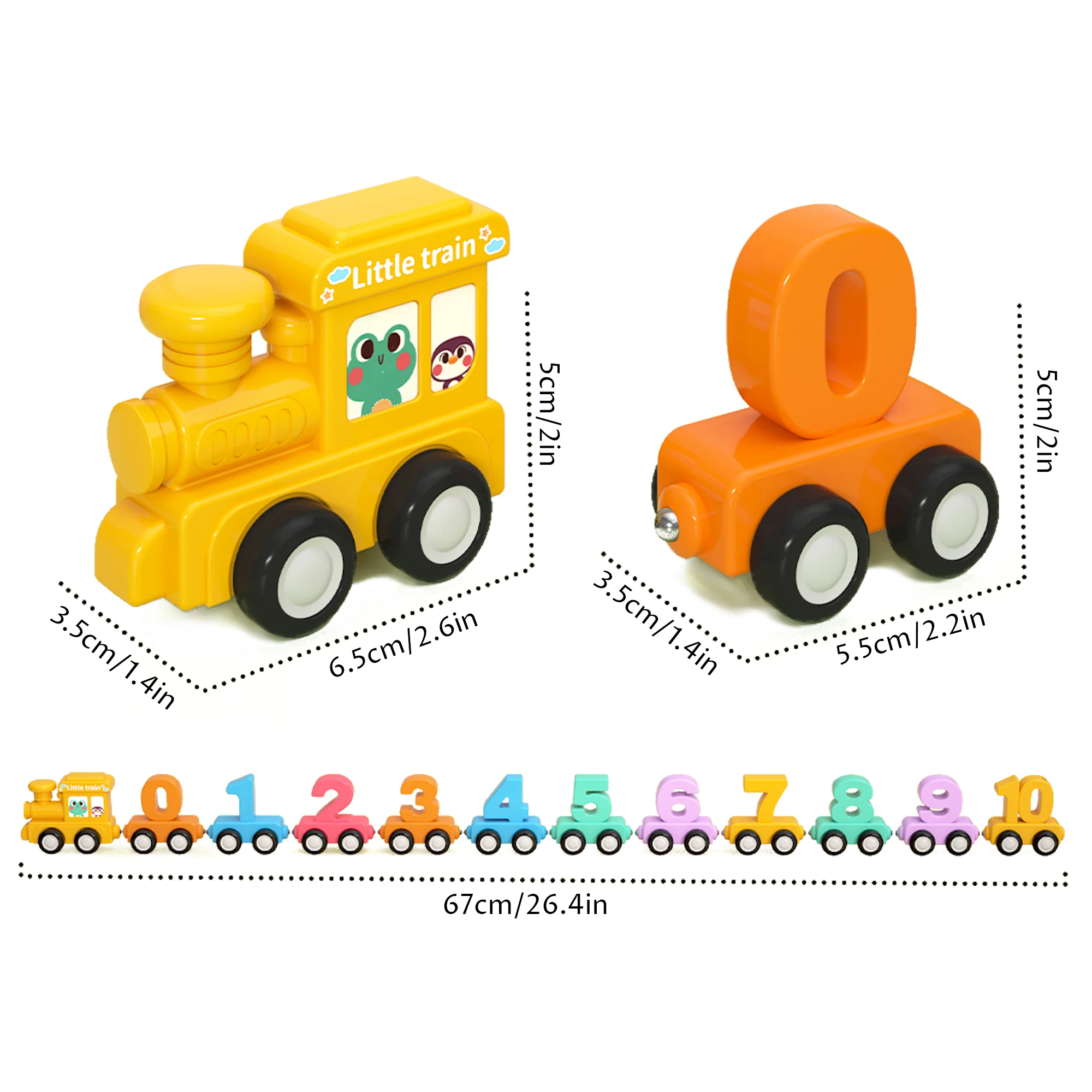 There are 11 numbers from 0 to 10, along with a cute locomotive. The rich colors are all the ones that babies like. It can help babies recognize the magical numbers more quickly and with great interest. It is a very suitable gift for babies’ growth!