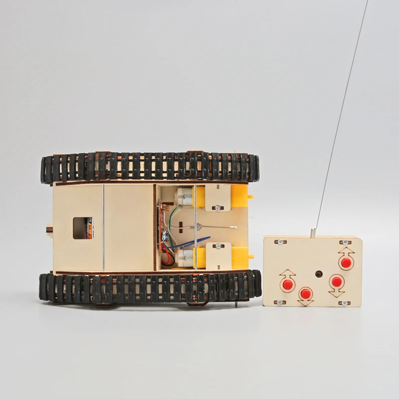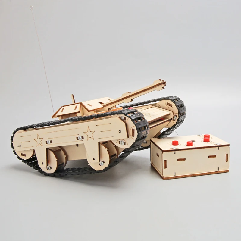 DIY Wooden 3D Puzzle Tank Model Science Kit Assembly Toys Rc Tank Physics Electronic School Project Scientific Experiment Toys